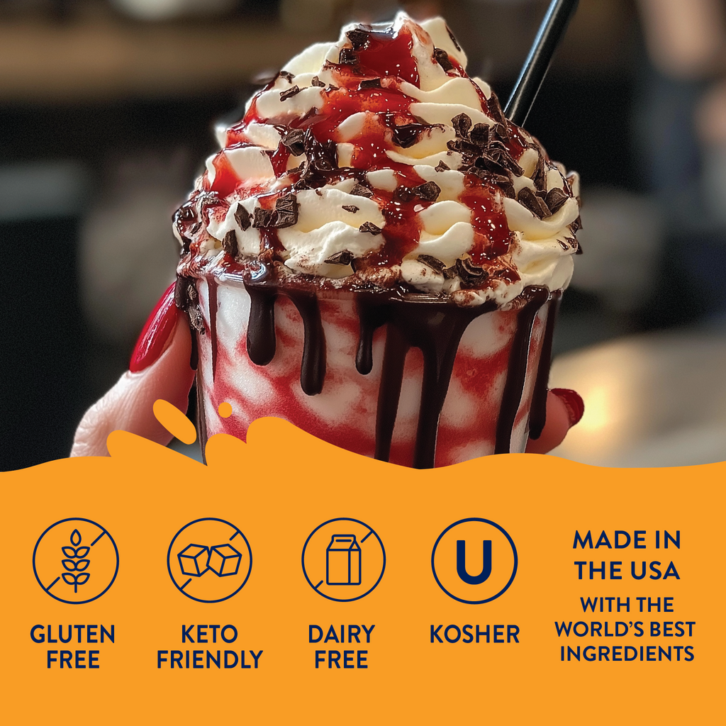 This haunting blend of black cherry and chocolate delivers a juicy, electric kiss of flavor that’s as bold as it is blood-red. Stir it into mocktails, sodas, or midnight brews.